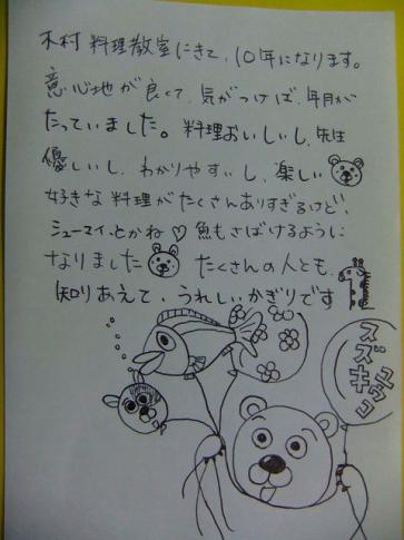 料理おいしいし、先生優しいし、わかりやすいし、楽しい。