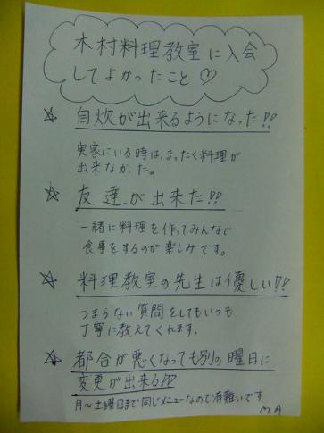 又、その後の調理実習では、目を配り、一つ一つ丁寧に教えて下さるところが有難いです。